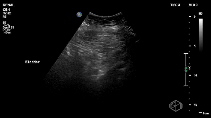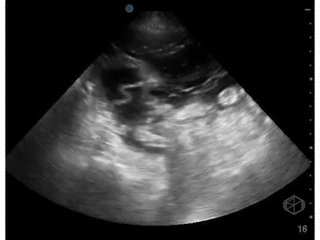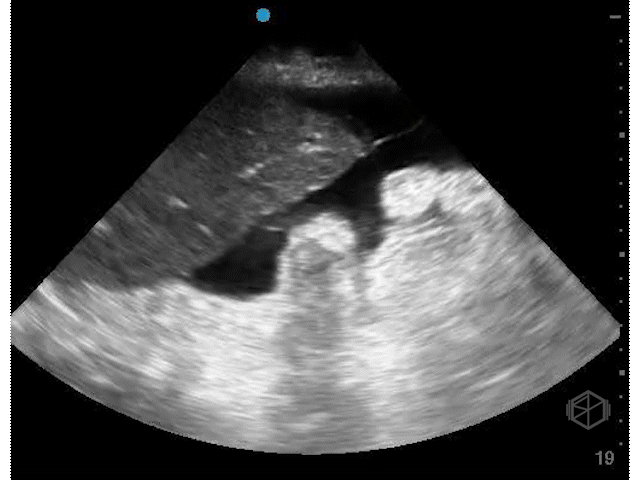 Several days later, she returned to the ED with hypotension, lightheadedness, and mild abdominal discomfort. Recognizing the potential urgency, Dr. Weinberger immediately performed a POCUS, which revealed the following: