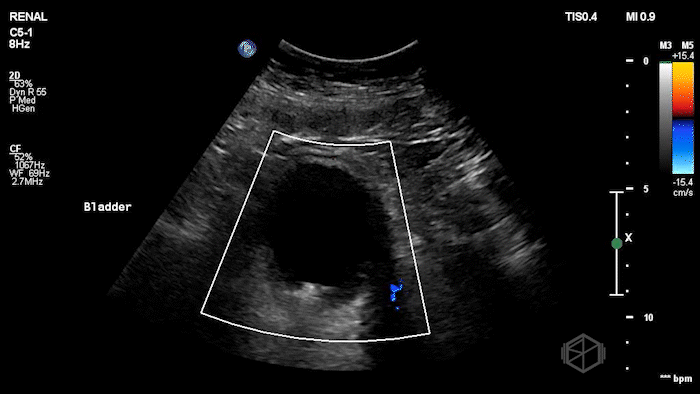 A 70's male with a history of nephrolithiasis presented to the ED with right flank pain worse over the last 4 days. Dr. Mendelow performed a POCUS immediately that showed: